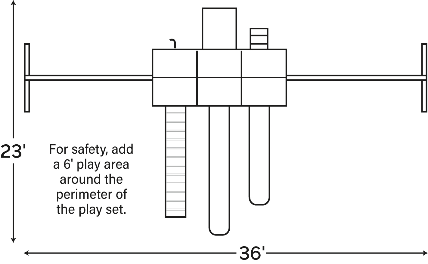 Playtime never ends with this oversized play set that’s overflowing with fun. An extra-large fort can accommodate several children, while a high and low slide provides exit options for both big and little kids. The set is flanked by six swing options including three traditional swings as well as a safety swing for toddlers, a ball swing, and a trapeze bar with rings. A crossbar ladder, climbing platform, and rope bridge guarantee hours of backyard amusement.